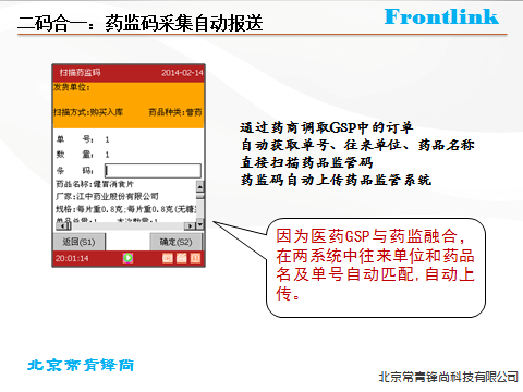 利用藥監(jiān)碼特性和藥監(jiān)碼中信的新功能,結(jié)合目前我國醫(yī)藥企業(yè)的實際生產(chǎn)情況和管理要求,常青鋒尚對藥品身份的進(jìn)行二碼(商品碼和藥監(jiān)碼)合一,在此基礎(chǔ)上實現(xiàn)出入庫的精細(xì)化管理,直至出入庫等流通以及最終的銷售環(huán)節(jié)的產(chǎn)品質(zhì)量追溯管理系統(tǒng)、防竄貨系統(tǒng)。